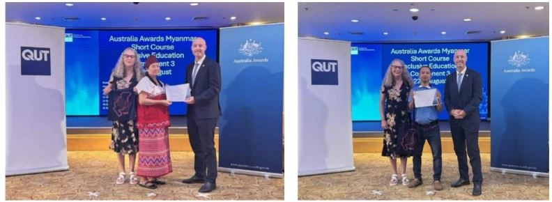 Myanmar to join Inclusive Education short course which is offered by Queensland University of Technology (QUT) University, Australia. The course was conducted through both virtually and in person at Myanmar and Thailand. There are 25 trainees from Myanmar. The course starts on --- and end at the end of August, 2025.